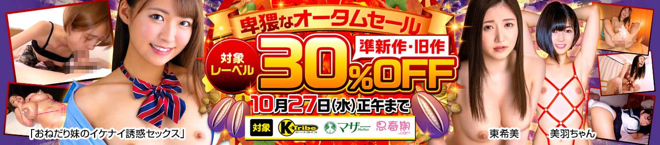 【期間限定】 DUGA 卑猥なオータムセール 30%OFF 2021年10月14日 エロ動画ランキング DUGA • キャンペーン 【期間限定】 DUGA 卑猥なオータムセール 3割引セール DUGAにて、卑猥なオータムセール オススメ作品 が、3割引! 『卑猥なオータムセール』と題し、割引キャンペーンを開催。 キャンペーン期間中は、ケー・トライブ、マザー、思春期.comの、「準新作」「旧作」を、 30%OF ‥‥ 「【期間限定】 DUGA 卑猥なオータムセール 30%OFF」の続きを読む